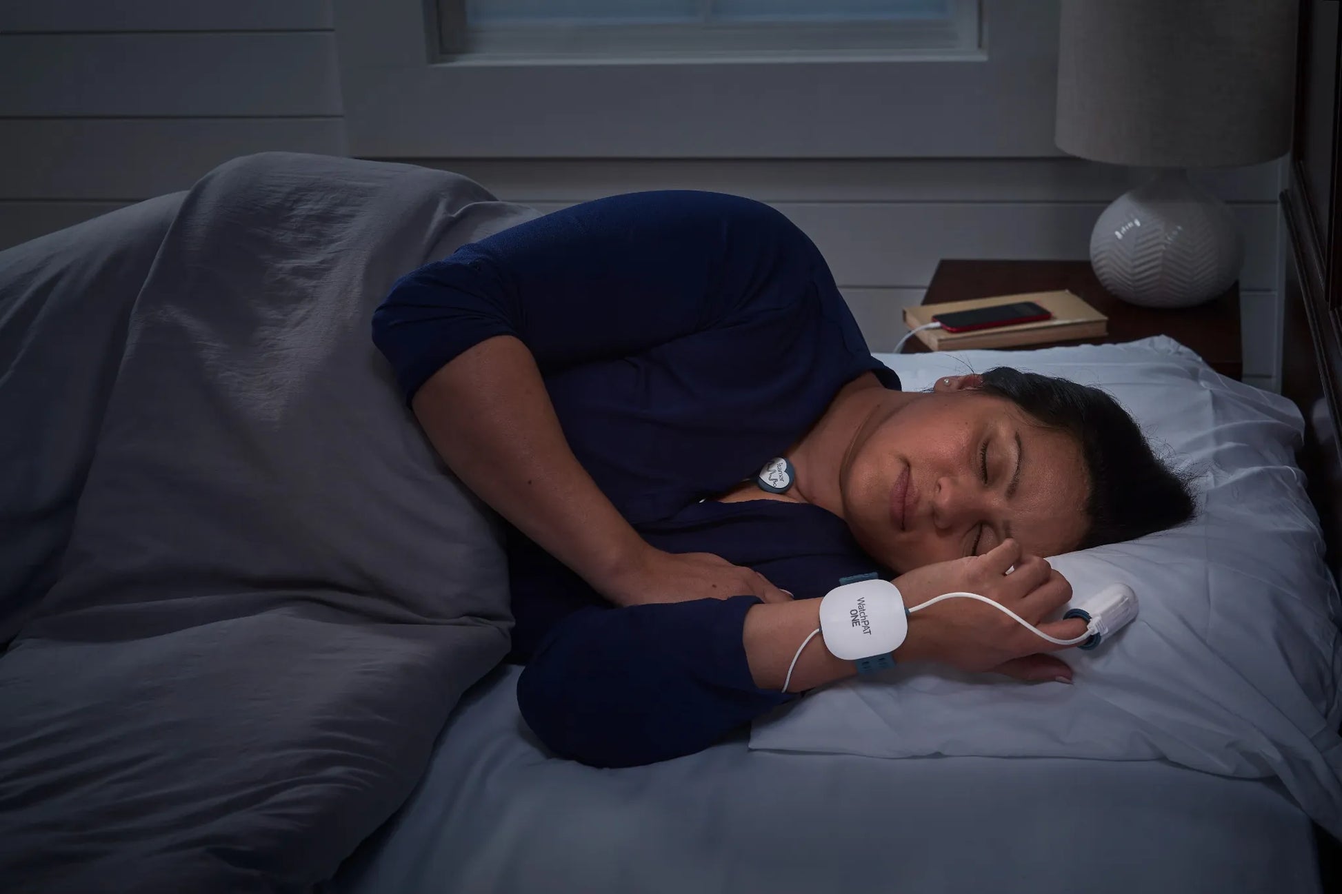 WatchPAT® ONE es una prueba de apnea del sueño para realizar en casa, guiada por una app móvil que te acompaña paso a paso para poner el equipo correctamente y comenzar el registro nocturno.